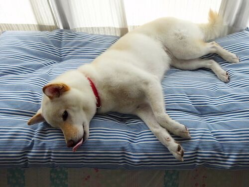 夕方の散歩が短くてユメちゃんはつまらなさそう。